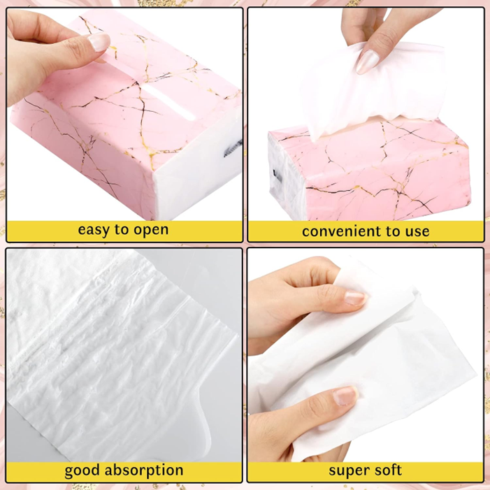 10 Packs Small Flower Facial Napkins Soft Watercolor Disposable Facial Tissue Material Native Wood Pulp Fiber 3 Ply 300 Sheets Per Pack 9000 Sheets in Total (Marble)