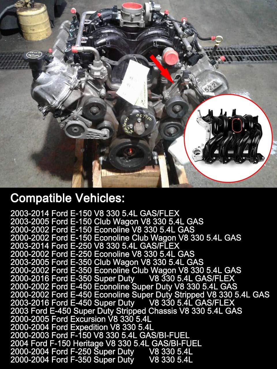 615-188 Upper Intake Manifold with Gasket Kit Fits for Ford E-150 E-250 2003-2014 E350 Super Duty 00-16 E450