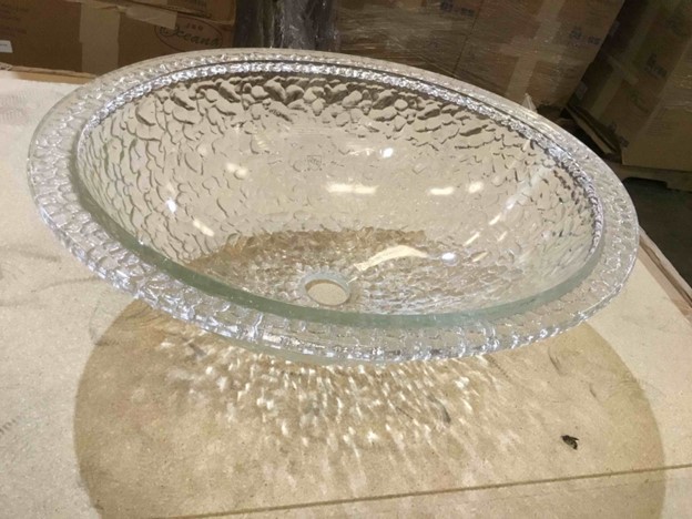 JSG Oceana Pebble Crystal Glass Drop-In or Undermount Oval Bathroom Sink