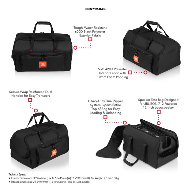 JBL Bags Speaker Tote Bag Designed for JBL EON 712 Powered 12-Inch Loudspeaker (EON712-BAG)