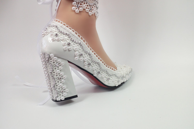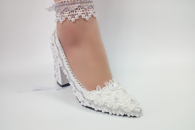 Women Thick Heel Pointed Toe High Heels Lace Ankle Strap Shoes Good for Weddings and Parties